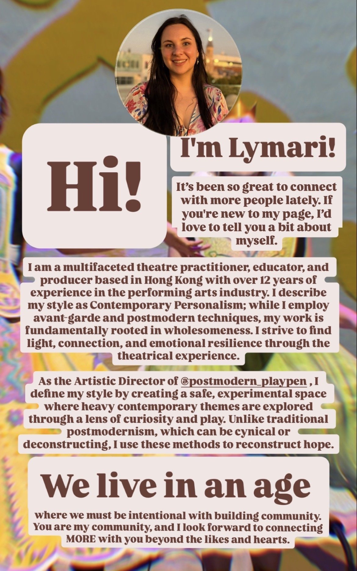 Postmodern Playpen (a division of KYD Theatre Ltd.) is a new, inclusive theatre production company in Hong Kong dedicated to staging high-quality productions that bring joy, healing, and a sense of belonging to audiences of all ages.